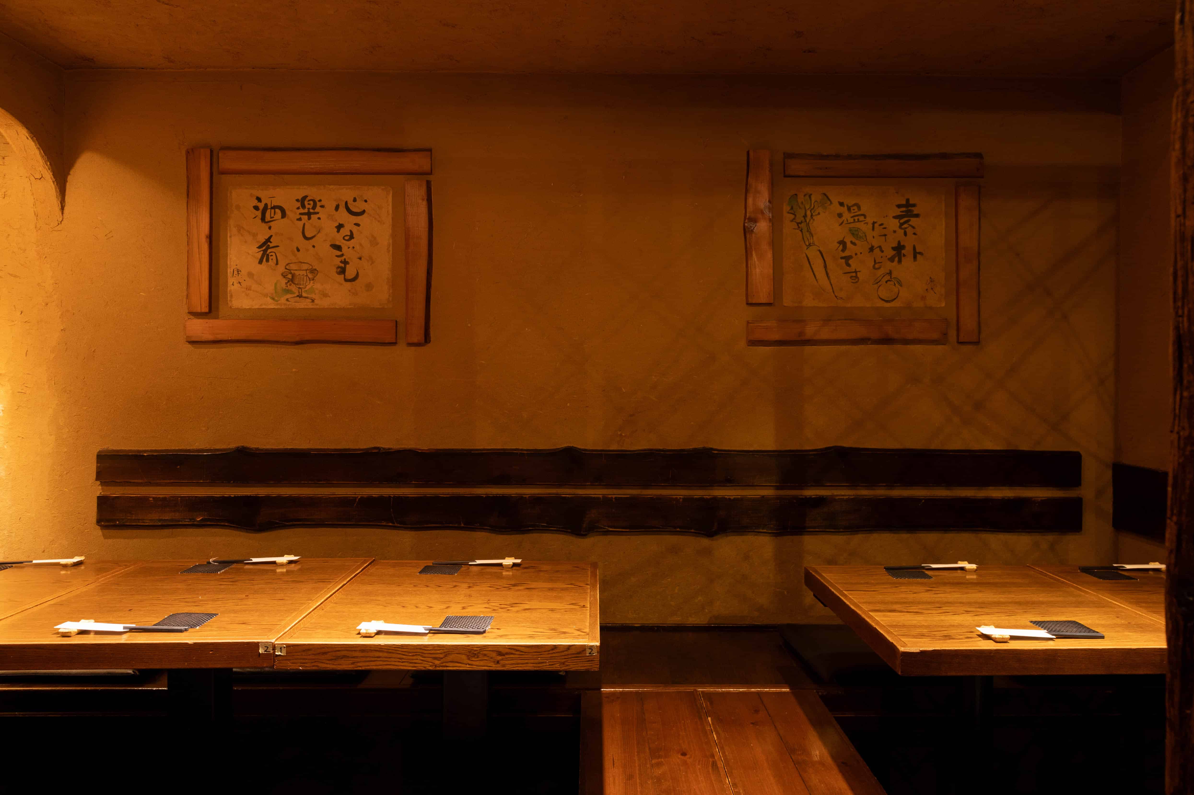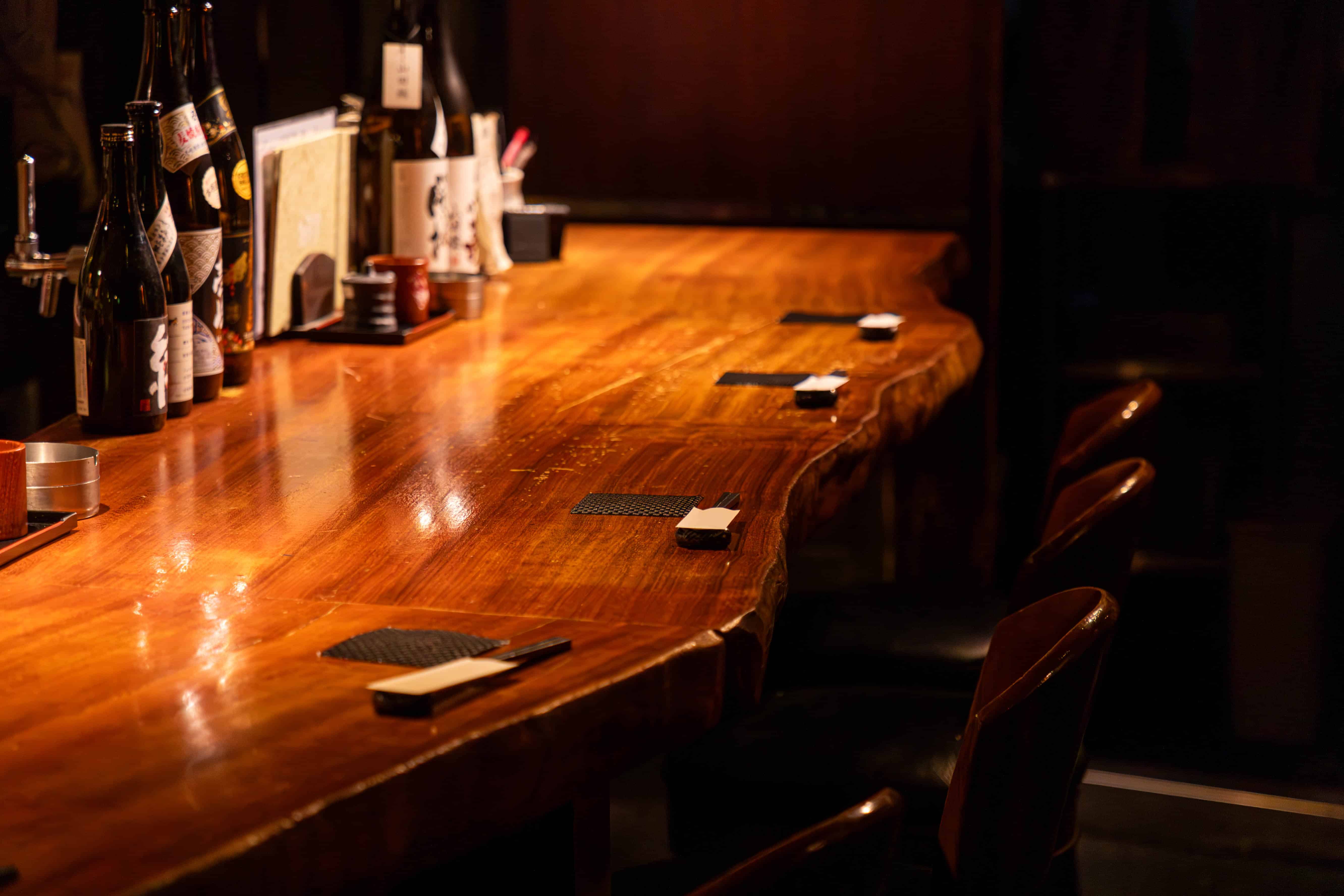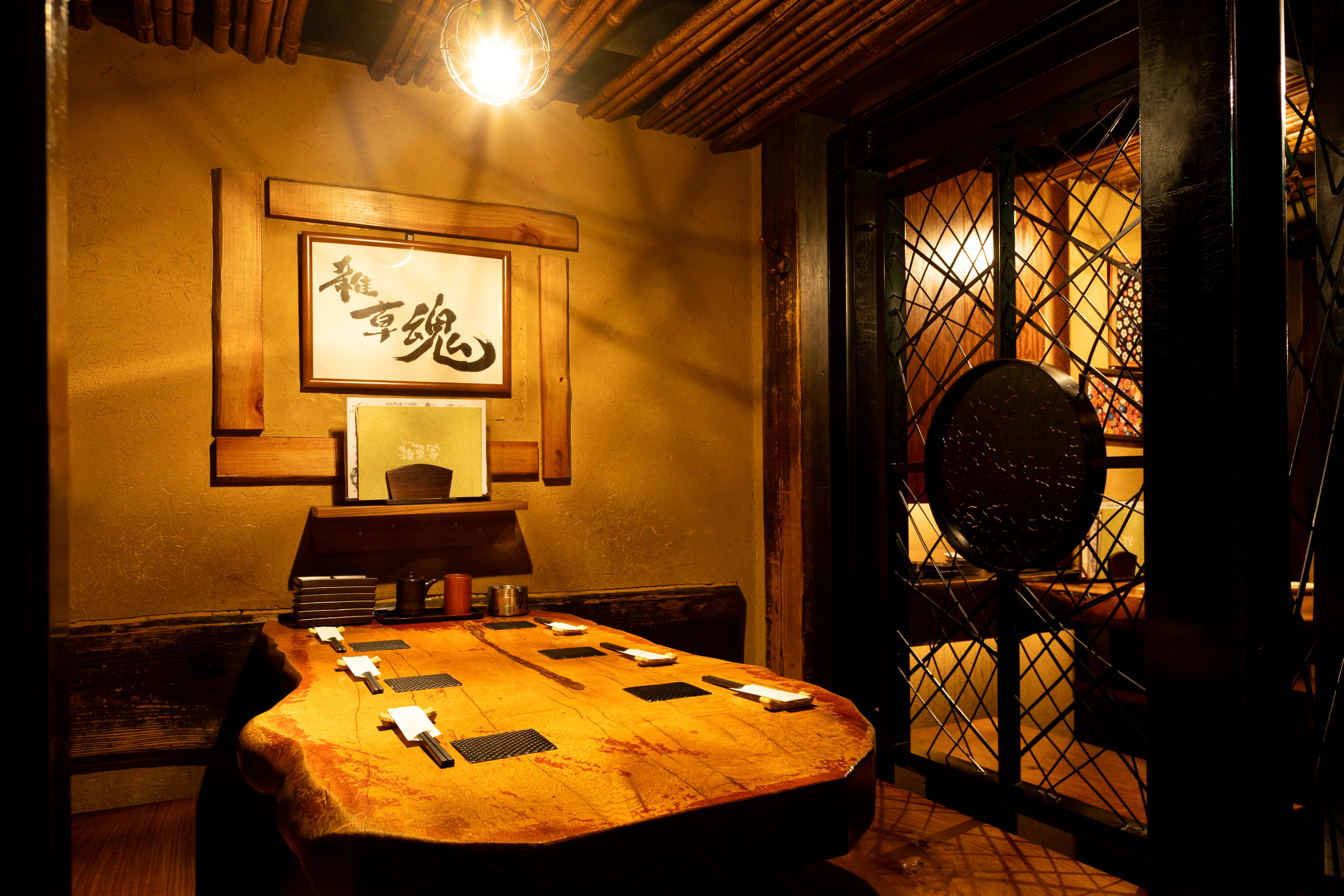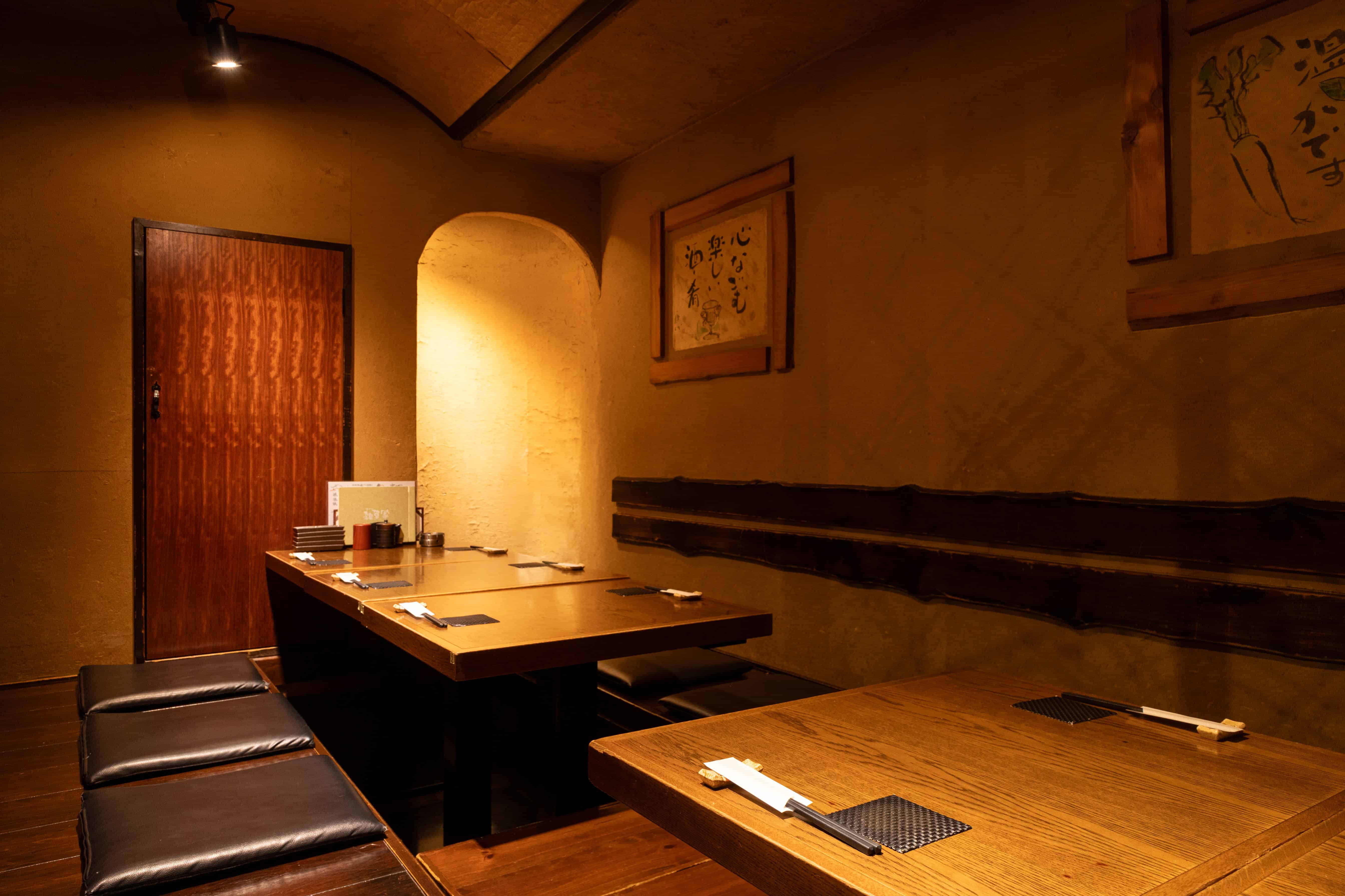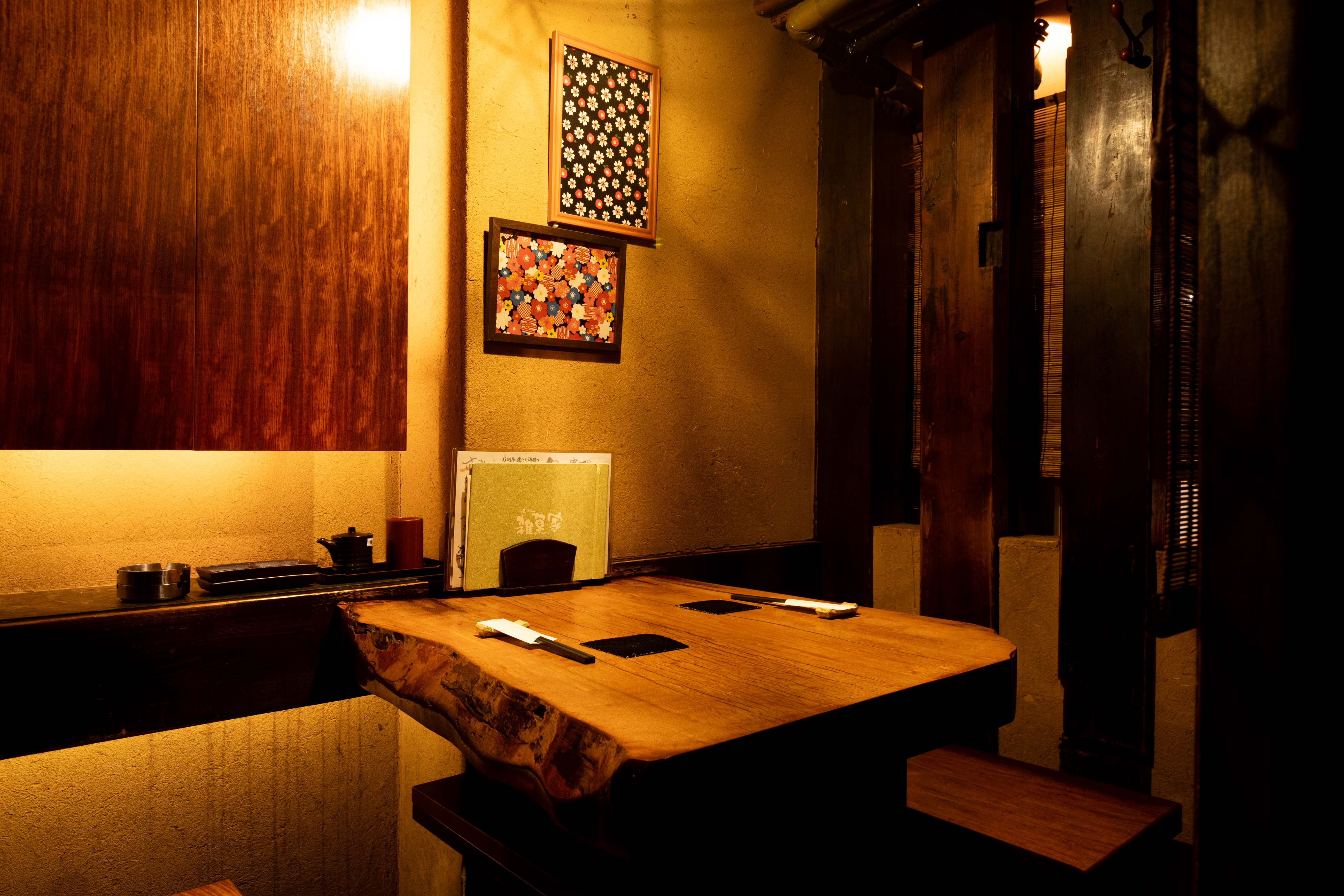 店内は木の温もりが溢れる非常に落ち着いた空間なので、時間を忘れてお寛ぎいただけます。お1人様からも楽しめるカウンター席や半個室、個室、掘りごたつなど様々なタイプのお席にシーンに応じてご案内いたします。